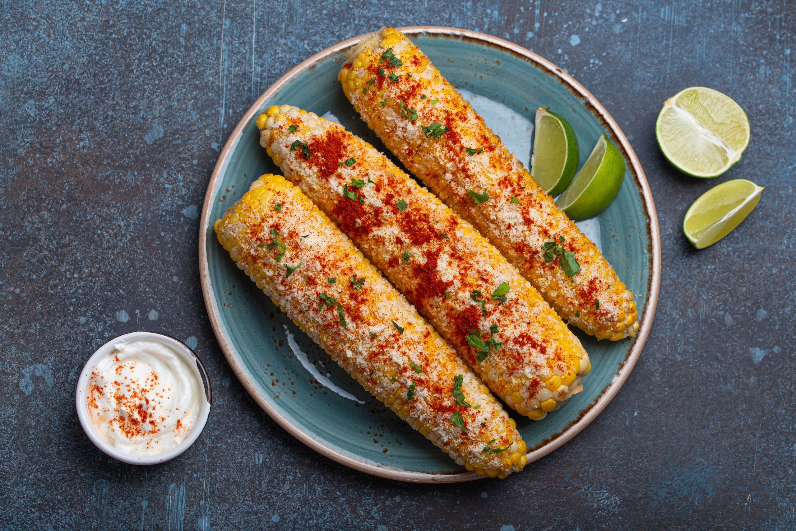 Fire-roasted corn brushed with butter, mayo, and Cotija cheese.